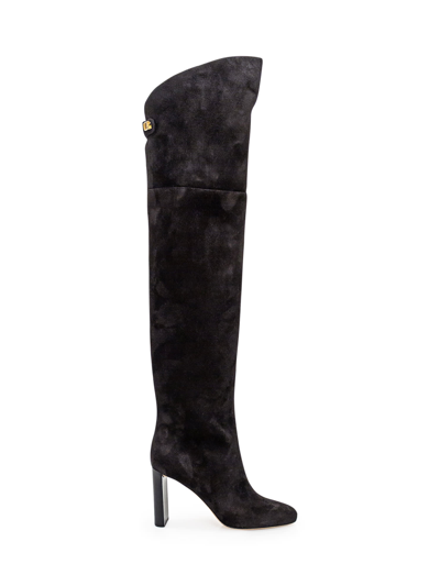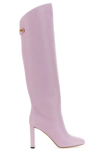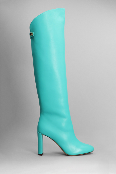 Adrianna 90mm Knee-high Leather Boots In Gold