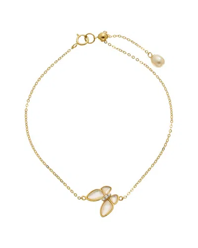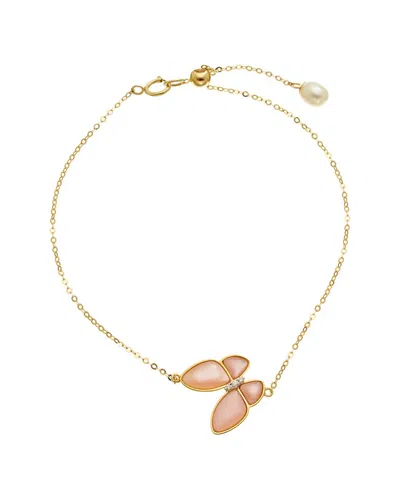 18k 0.01 Ct. Tw. Diamond & Pearl Bracelet