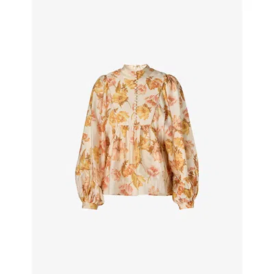 Womens Taupe Lune High-neck Ruffle-hem Woven Blouse In Pink