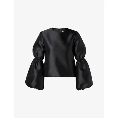 Womens Black Cia Puff-sleeve Satin Blouse