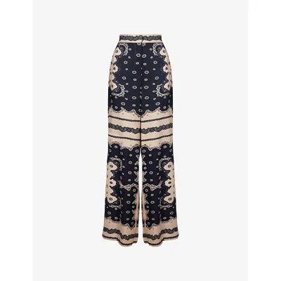 Womens Bella Satin-look Palazzo Woven Trousers In Bandana