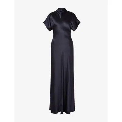 Womens Dark Blue Alivia Short-sleeve Satin Maxi Dress