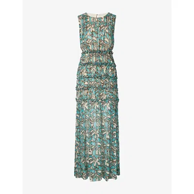 Womens Mare Ruched-neck Graphic-print Woven Maxi Dress In Multi