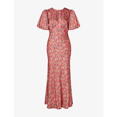 Womens Pink Ditsy Freja Pouf-sleeve Woven Maxi Dress