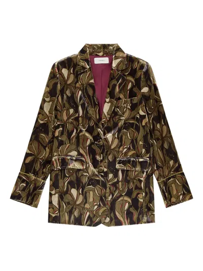 花卉丝绒西装夹克