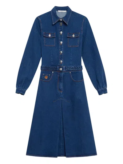 麻辫腰带牛仔中长连衣裙