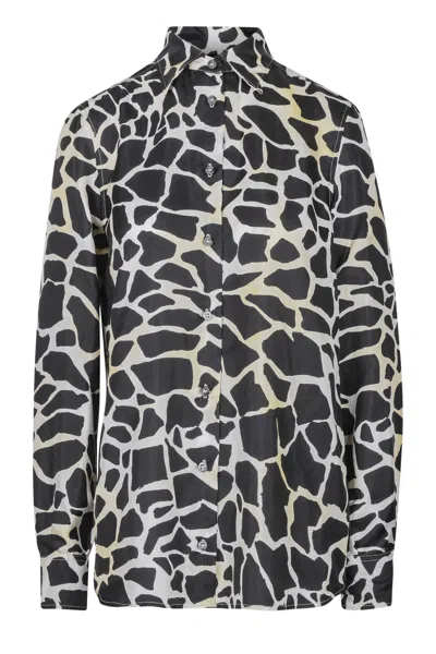 长颈鹿纹扣角领衬衫