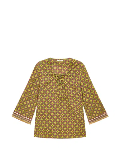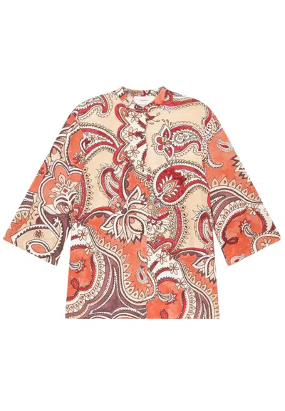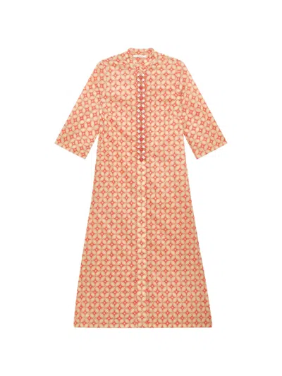 Shell-embellished Geometric-print Kaftan In Orange
