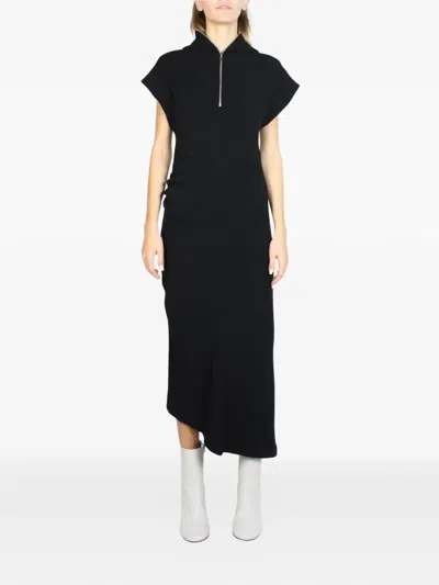拉链领连帽中长连衣裙