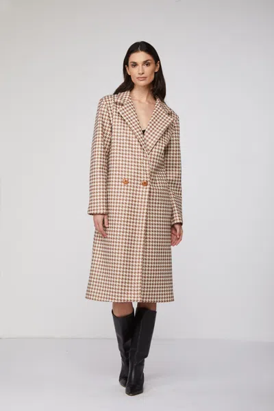 Cappotto Diana Pied Poule Beige In Gold