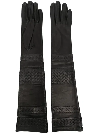 Elbow-length Panelled Leather Gloves In Black