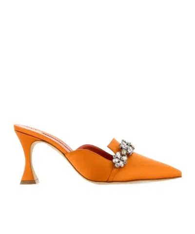 Hangisi 70 Clc Crystal Buckle Satin Pumps In Cream