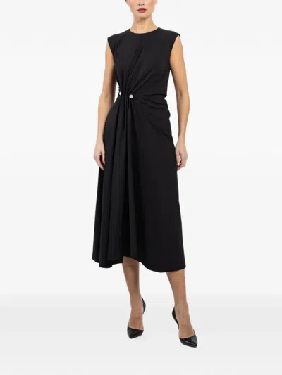 珠饰纽扣中长连衣裙