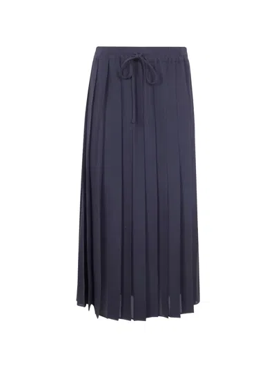 Pleated Drawstring Midi Skirt In Blue