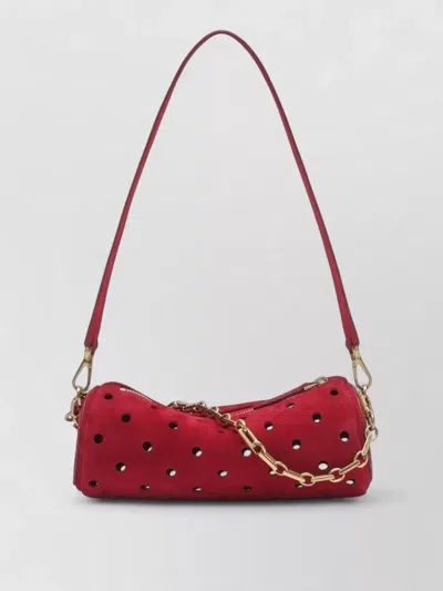 Curved Silhouette Polka Dot Eyelet Chain Shoulder Bag In Red