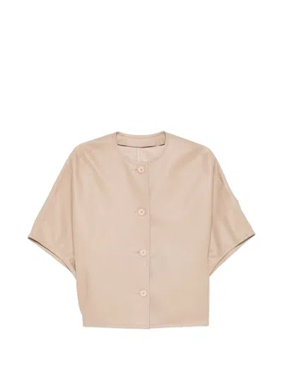 Nappa Shirt Jacket With Saddle Stitch In Brown