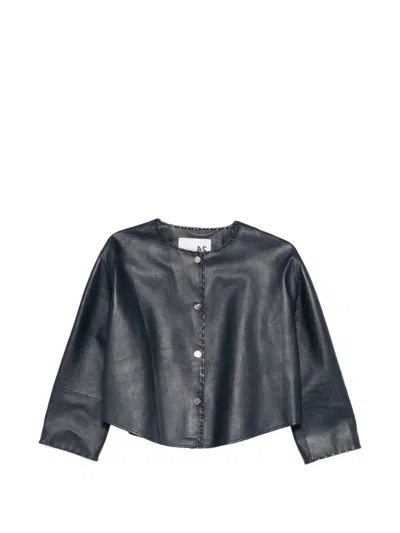 Nappa Coat With Saddle Stitch And Side Slits In Blue