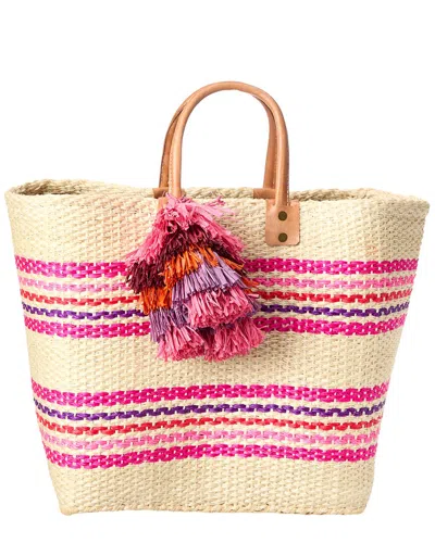 Montauk Color Block Raffia Tote In Multi