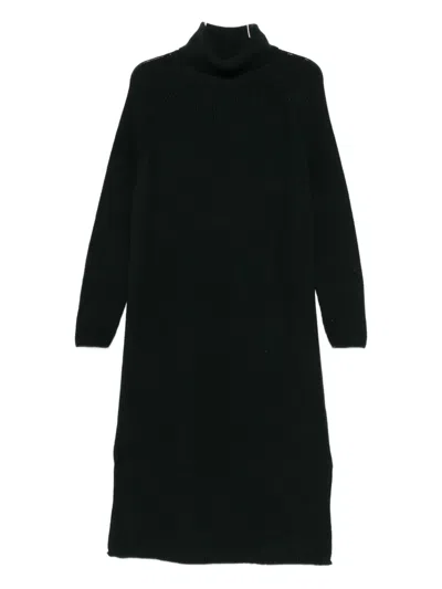 高领插肩式衣袖中长连衣裙