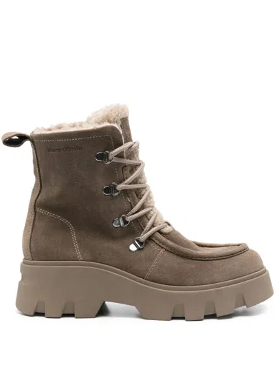Lace-up Padded Boots In Neutral