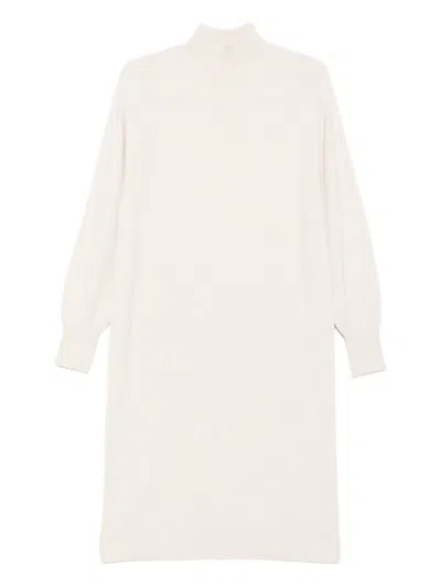 Mock-neck Long-sleeve Mini Dress In Neutral
