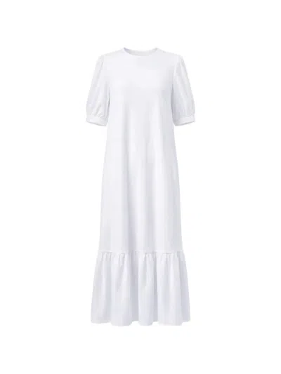 Olivia 荷叶边泡泡袖中长连衣裙 In Black