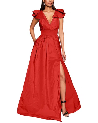 Sleeveless Deep V-neck Embroidered Gown In Red