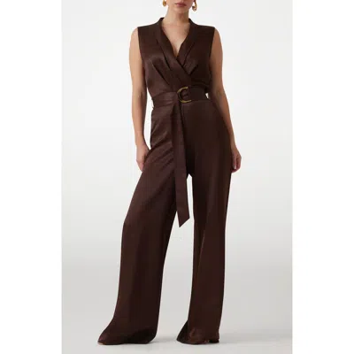 Iva Surplice V-neck Sleeveless Jumpsuit In Brown