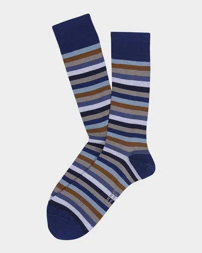 Pima Cotton & Nylon Lisle Rainbow Stripe Socks In Navy Brown