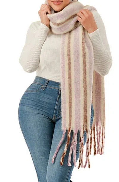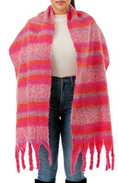 Women's Cozy Plaid Blanket Scarf With Fringe In Black