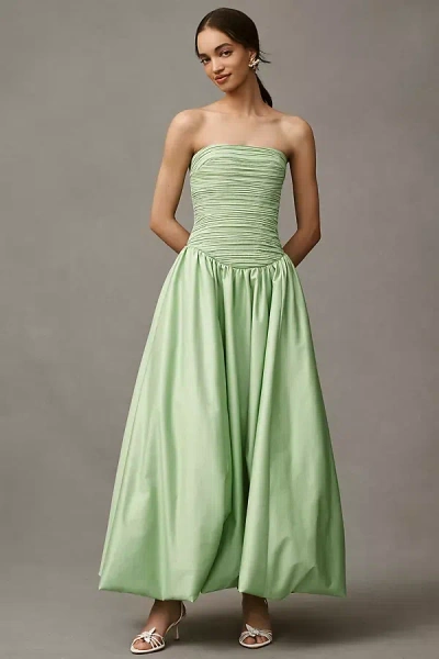 Briana Strapless Drop-waist Bubble-hem Midi Dress In Green