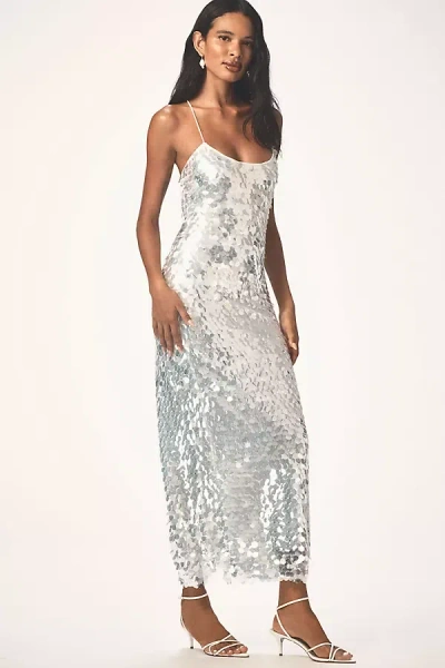 Sleeveless Pailette Sequin Column Midi Dress In White