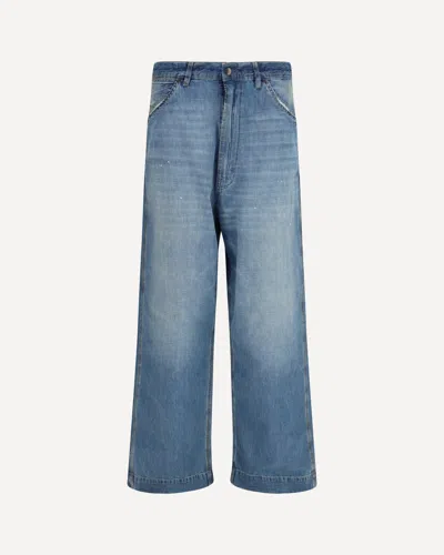 Patchwork-detail Wide Leg Jeans In Blue