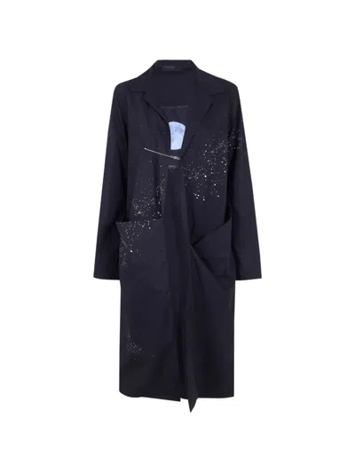 Front-pocket Printed-detail Coat In Black