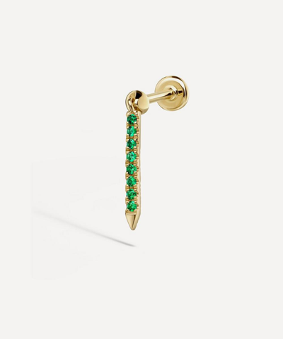 18ct Gold 11mm Emerald Eternity Bar Charm Single Threaded Stud Earring