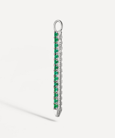 18ct White Gold 7mm Double Sided Diamond And Emerald Eternity Bar Charm