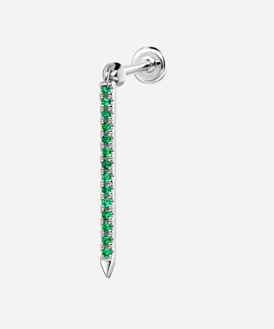 18ct White Gold 18mm Emerald Eternity Bar Charm Single Threaded Stud Earring