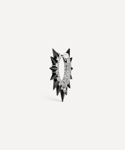 18ct White Gold Black Moissanite Mohawk And Diamond 8mm Hoop Earring