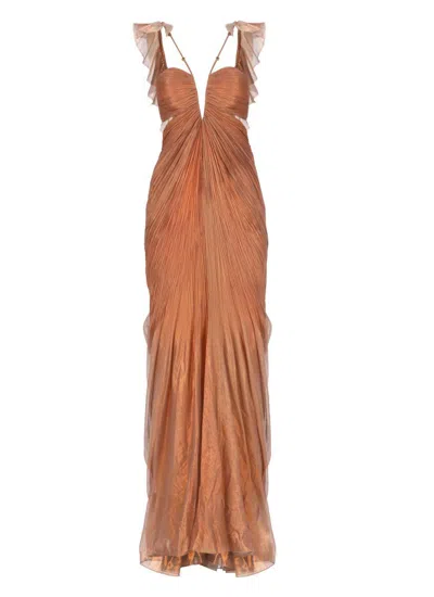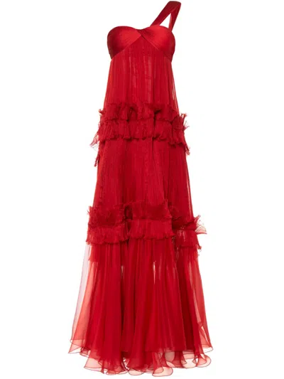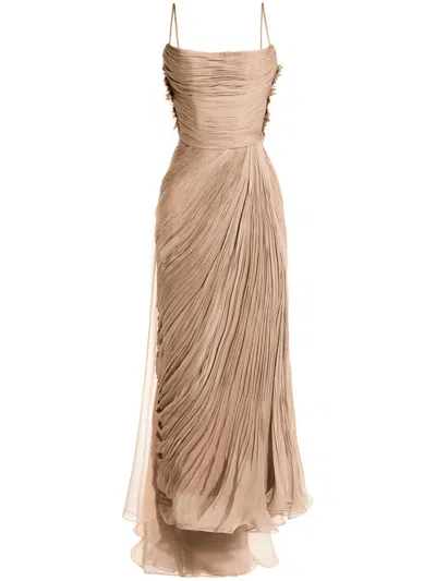 MEILIEN褶裥真丝混纺雪纺长礼服