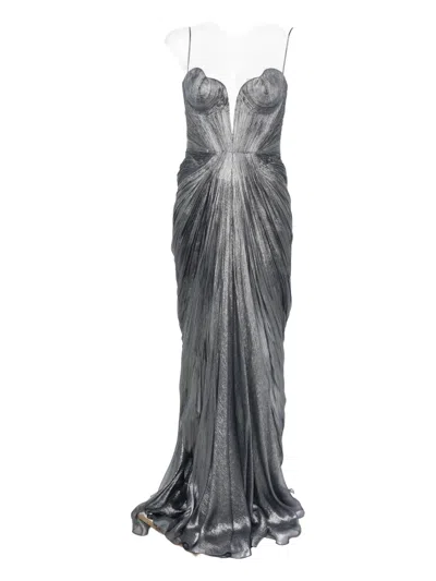 ALESSANDRA垂褶金属丝面料长礼服