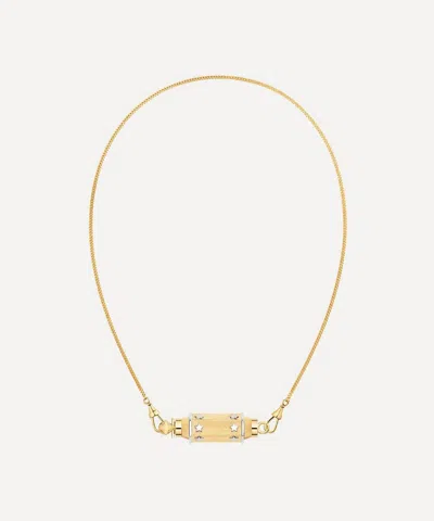 Blunt Box 18kt Gold Locket Necklace With Diamonds And Sapphires In Multicoloured