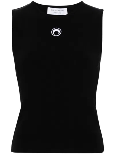 Moon Logo Ribbed Jersey Tabk Top Woman Black