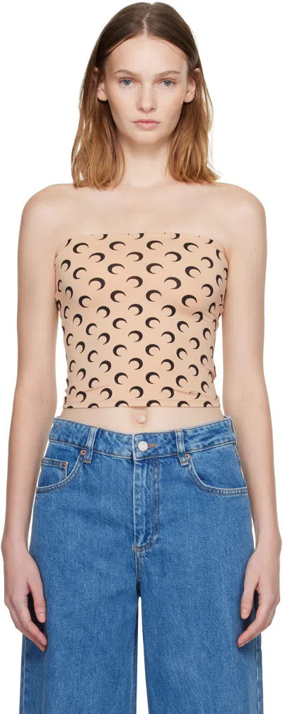 Tan Moon Printed Jersey Second Skin Tube Top In Neutral