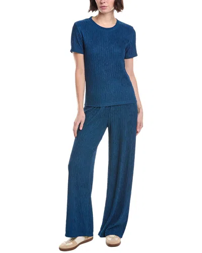 2p Crinkled Plisse Button Shirt & Pant Set In Blue