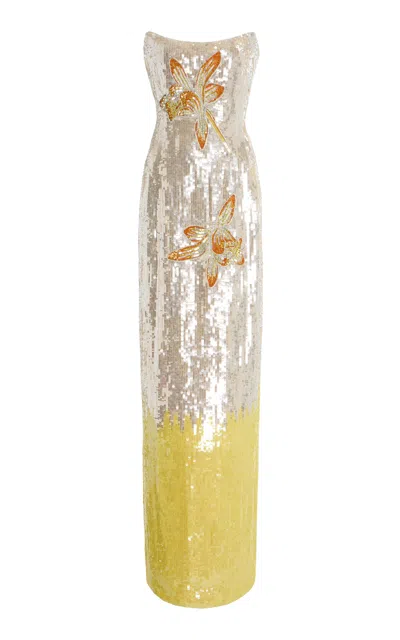 ODESSA拼接提花长礼服