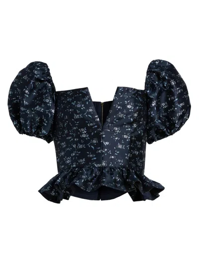 Women's Sylvan Floral Brocade Balloon-sleeve Top In Blue