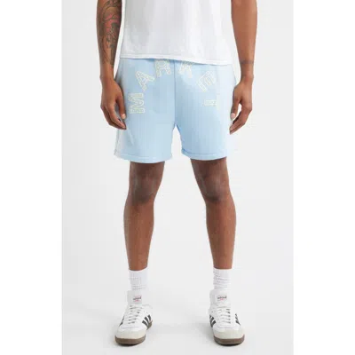 Starry Arc Logo Cotton Graphic Fleece Sweat Shorts In Blue