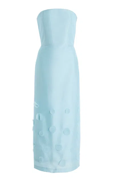 Lucille Floral-appliquéd Satin Midi Dress In Blue