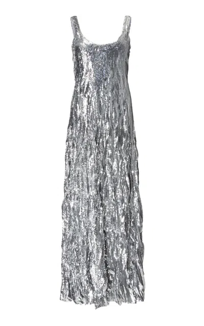 Ruched Silk Satin Off-the-shoulder Gown In Grey