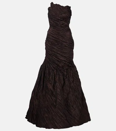Exclusive Strapless Ruched Taffeta Gown In Pink